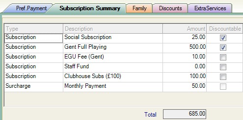 Now view the selected members Subscription Summary and any surcharge will be added to the notice.